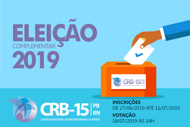 Informamos que o CRB-15 está em período de eleição complementar, as inscrições serão do dia 27/06/2019 até 11/07/2019 os candidatos podem se inscrever e trazer pessoalmente o requerimento e a declaração até a nossa sede. A votação será realizada no dia 18/07/2019 às 14h.