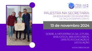 Palestra na Secretaria de Educação do Município de Cruz do Espirito Santo PB, no dia 13/11/23 , sobre a importância da leitura, biblioteca, dos bibliotecários, direito